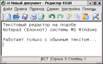 В дистрибутиве операционной системы Linux поставляется некоторый минимально необходимый набор программного обеспечения. Вкратце рассмотрим наиболее полезные приложения. Текстовый редактор KEdit (KDE > Редакторы > KEdit). По своим возможностям напоминает Notepad (Блокнот) из системы Windows. Работает только с чисто текстовыми файлами, то есть без форматирования текста, без выделения его частей разными шрифтами и прочего. Удобен для просмотра различных файлов настроек, содержащих текстовую информацию, кода html и так далее. Кроме всего этого есть возможность отправки редактируемого документа по электронной почте и распечатки текста. ![]() Текстовый процессор AbiWord (KDE > Приложения > AbiWord). По внешнему виду очень напоминает MS Word. Большинство элементов управления и пунктов меню так же аналогичны MS Word. Распознает множество текстовых форматов, в том числе и “.doc”, “.rtf”; имеет и свой формат файлов “.abw”. С помощью этого процессора можно редактировать и создавать html-файлы, однако html-код выходит крайне некрасивым и получающиеся файлы имеют очень большие размеры. Табличный процессор Gnumeric Spreadsheet (KDE > Приложения > Gnumeric Spreadsheet). Сделан по аналогии MS Excel и имеет подобную структуру меню и кнопок. Способен сохранять и работать с таблицами MS Excel 95, а так же с другими форматами. Имеет собственный формат “.gnumeric”, выполненный на базе XML. Как и с помощью Excel с его помощью можно строить диаграммы и графики. Программа просмотра PDF документов KGhostView (KDE > Графика > KGhostView). Позволяет открывать для просмотра pdf-файлы и по функциональным возможностям аналогична Acrobat Reader для Windows. Программа для сканирования и распознавания текста Kooka (KDE > Графика > Kooka). С ее помощью при наличии подключенного сканера можно отсканировать текст и запустить распознавание образов. Результат может быть сохранен в текстовый файл или отправлен на печать. Печать может вестись как на принтер, так и в файл, в частности, в PDF файл, то есть таким образом можно получить электронную книгу. Графический редактор KPaint (KDE > Графика > KPaint). Крайне мало функциональный графический редактор, уступает даже MS Paint. Поддерживает форматы: “.jpeg”, “.gif”, “.tiff”, “.ico” и некоторые другие. Программы просмотра изображений Kuickshow и KView (KDE > Графика > Kuickshow или KView). Программа Kuickshow сделана в виде браузера и имеет удобную навигацию для поиска изображений, а так же есть режим просмотра в виде слайд-шоу. Программа KView позволяет открывать изображения для просмотра. Поддерживает множество форматов графических файлов. Кроме этого в ней есть возможность получить изображение со сканера и сохранить в файл. Микшер KMix (KDE > Мультимедиа > KMix). Предназначен для настройки уровней сигнала на звуковых устройствах компьютера. Работает со следующими типами устройств: громкость колонок, MIDI-синтезатора, динамика, линейного входа, микрофона и CD-проигрывателя. Можно задавать баланс между левой и правой колонками. ![]() Проигрыватель аудио-CD KsCD (KDE > Мультимедиа > KsCD). Служит для прослушивания аудио CD-дисков. Имеет стандартный для проигрывателя набор кнопок управления и информационный экран. Медиаплеер Noatun (KDE > Мультимедиа > Noatun). Позволяет прослушивать файлы в форматах wav, mp3 и других. Для любителей winamp есть другой медиаплеер – XMMS (KDE > Мультимедиа > XMMS). Внешне он похож на winamp и имеет схожие элементы управления. Позволяет создавать списки воспроизведения, может проигрывать за